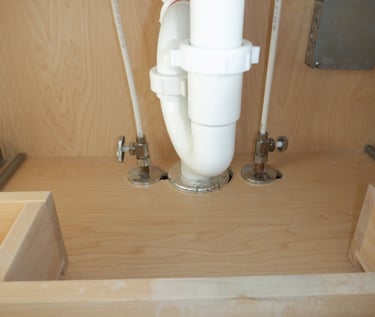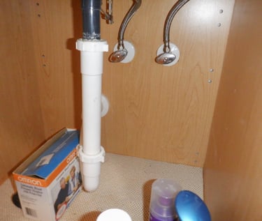 UNDER ALL SINKS SHOULD BE FREE OF CLUTTER FOR A FULL VIEW OF ALL PLUMBING