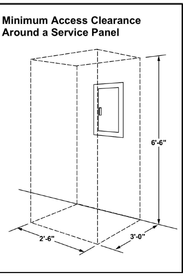 Reasonable access above, below, in front of electrical panels to be able to remove face panel to view the interior of the panel.
